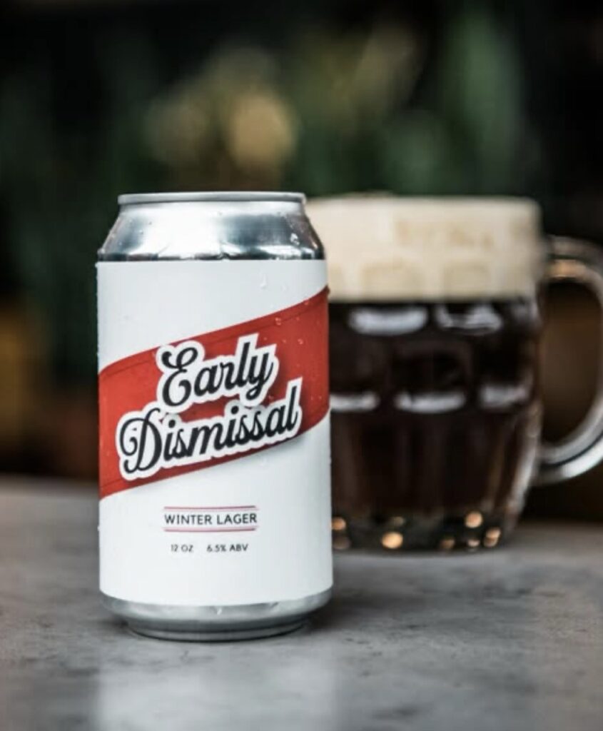 “Early Dismissal”, our Winter Lager (6.5%) is now in 12oz cans. Come sip a mug of this malty, dreamy little number. She’s a beaut.