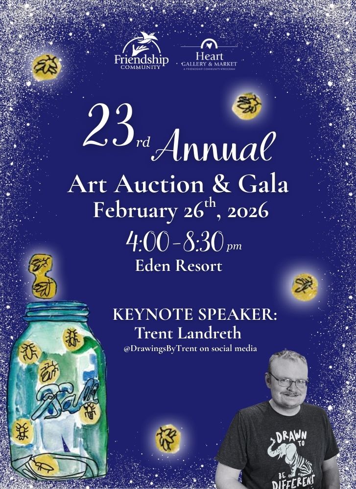 Join us for a magical evening supporting Friendship Community’s Heart Gallery & Market and Heart Art Studio. 🎨 Featuring keynote speaker and online star Trent Landreth @drawingsbytrent on social media. ✨ This 23rd annual event shines a spotlight on the extraordinary talents of Heart Artists at Friendship Community. It highlights creativity, uplifts voices, and showcases […]